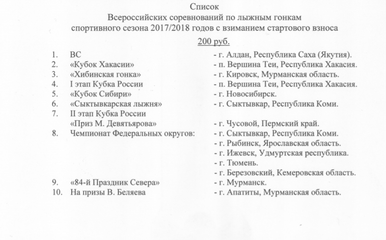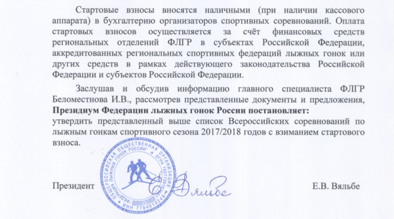 О взимании стартового взноса на Всероссийских соревнованиях спортивного сезона 2017/2018 годов.
