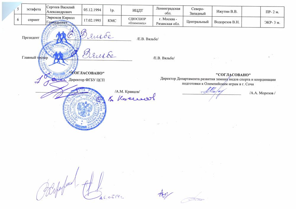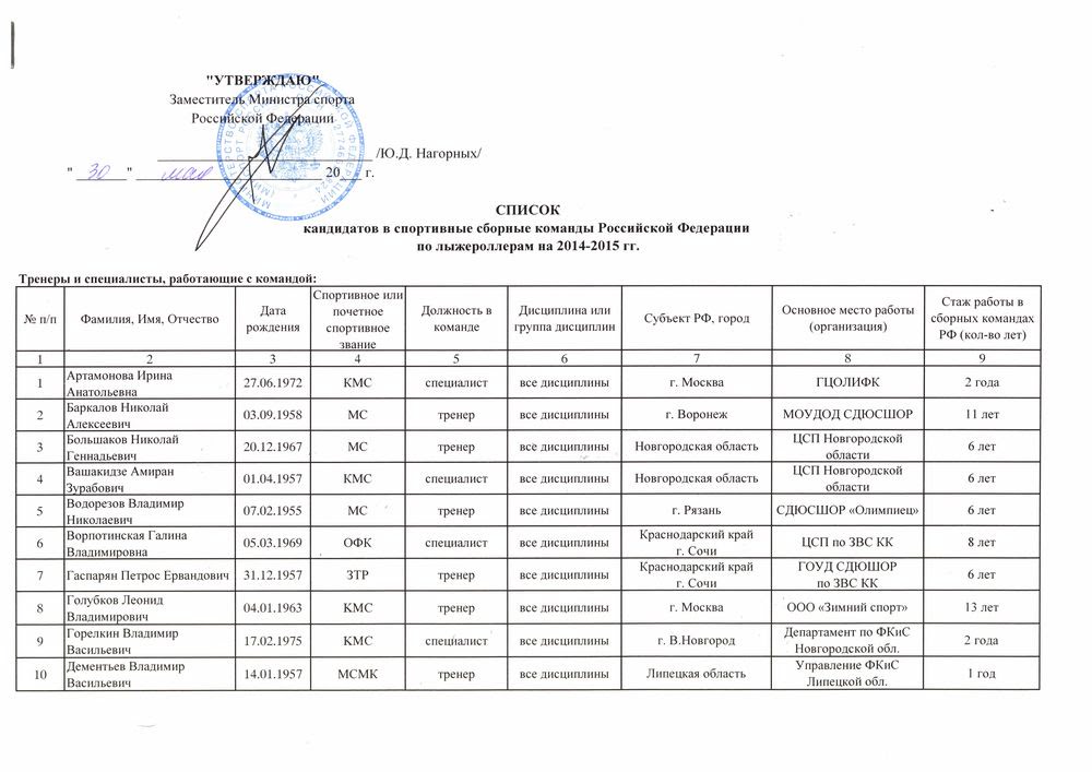 Список кандидатов в спортивные сборные команды Российской Федерации по лыжероллерам на 2014-2015 года