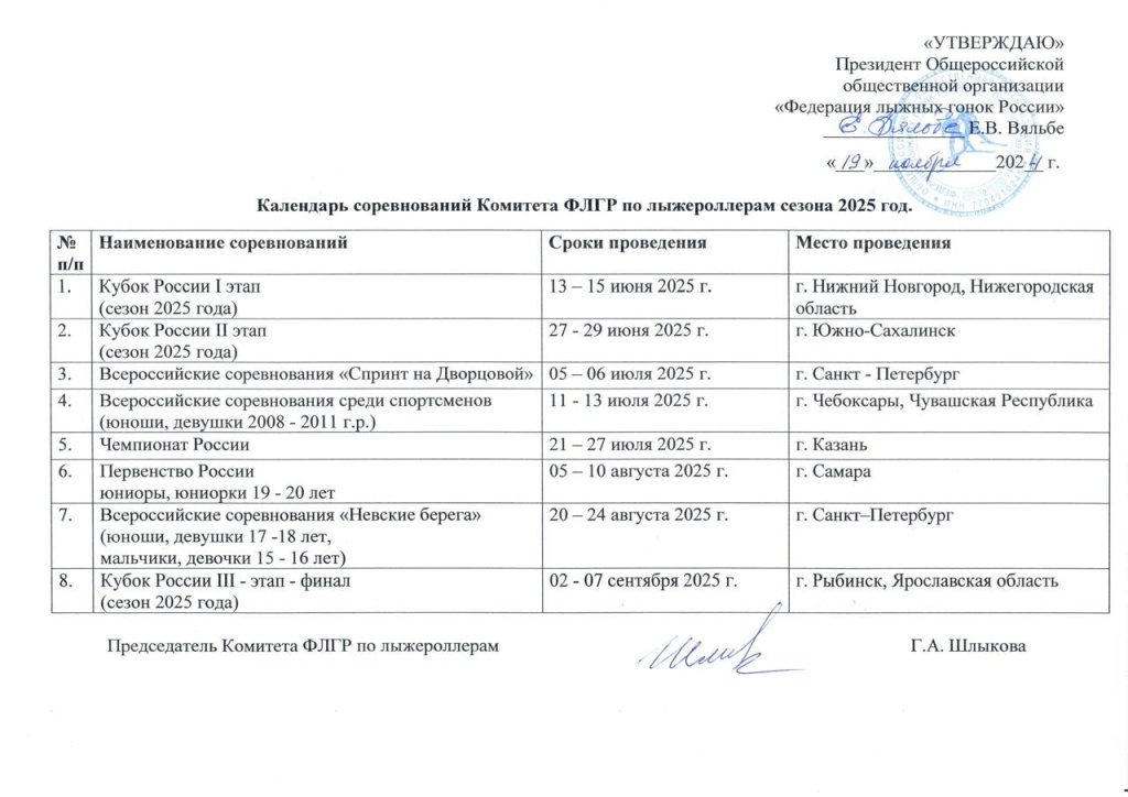 Календарь соревнований Комитета ФЛГР по лыжероллерам сезона 2025г.