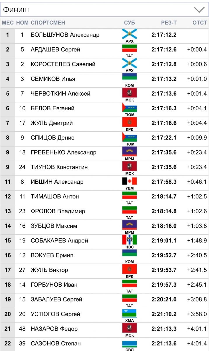 1. Александр Большунов (Архангельская область) 2.17.12