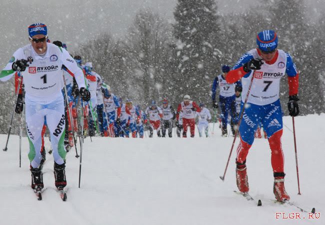 Ровно через 10 минут начался сильнейший снегопад. Первый номер - Сергей Турышев (ХМАО), седьмой номер - Николай Хохряков (Удмуртская республика)