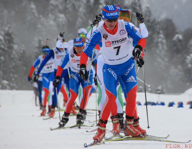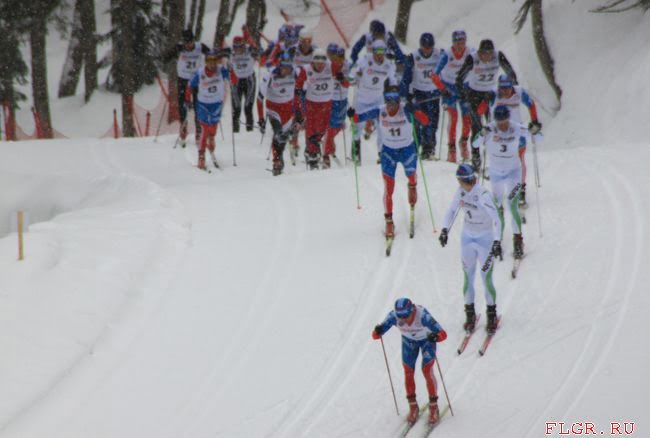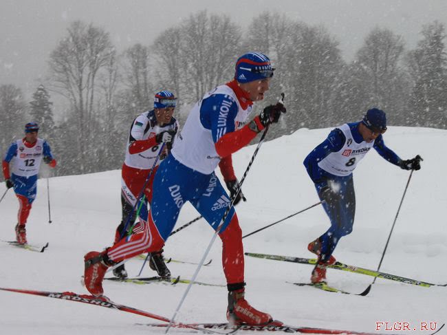 Мужчины шли плотной группой, никто не хотел идти впереди пелотона и протаптывать лыжню, а следовательно тратить больше сил