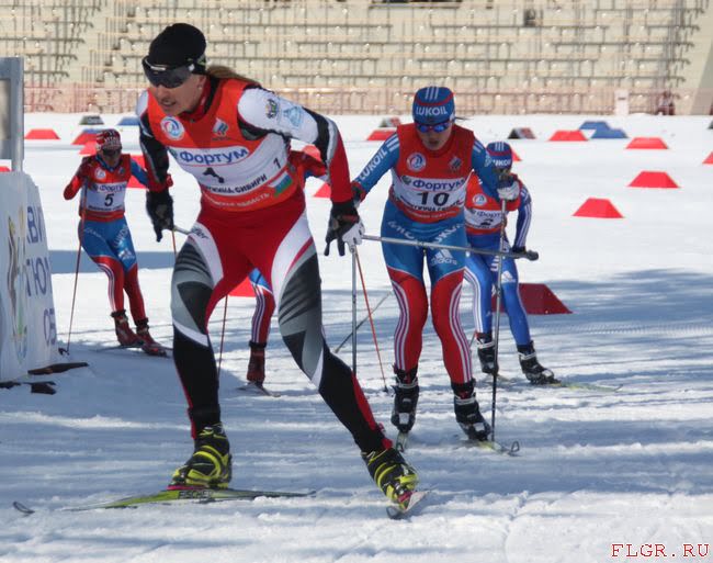 Алевтина Таныгина всю дистанцию держалась позади группы и не выходила на лидирующую позицию. Номер один - Ольга Рочева (Тюменская область)