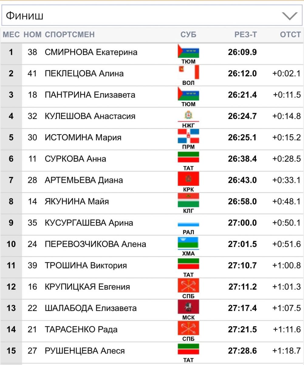 Среди женщин победу одержали Екатерина Смирнова, вторе место заняла Алина Пеклецова, третье место заняла Елизавета Пантрина.