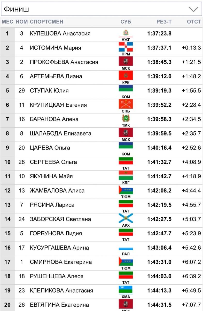 Победу одержала Анастасия Кулешова, второе место заняла Мария Истомина, третье место заняла Анастасия Прокофьева.