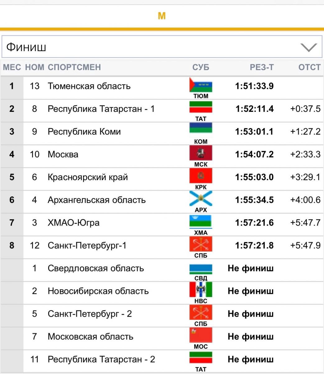 Среди мужчин победила команда Тюменской области в составе Иван Якимушкин, Евгений Белов, Денис Спицов и Артем Мальцев.