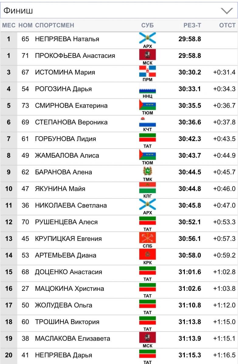 Среди женщин победу одержали Наталья Непряева и Анастасия Прокофьева, третье место заняла Мария Истомина.