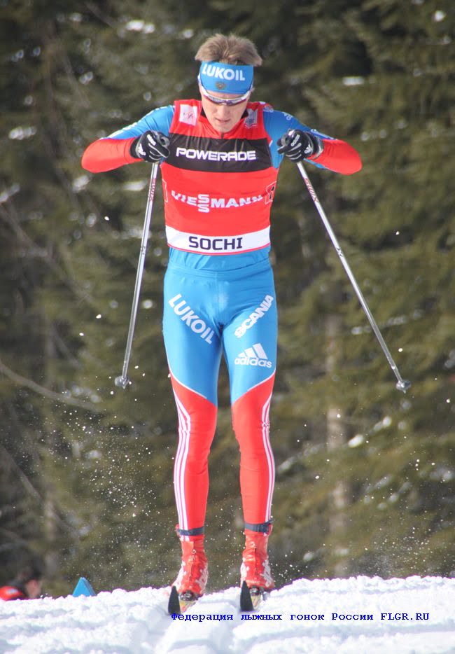 Максим Вылегжанин на втором этапе. Отрыв увеличивается метр за метром.
