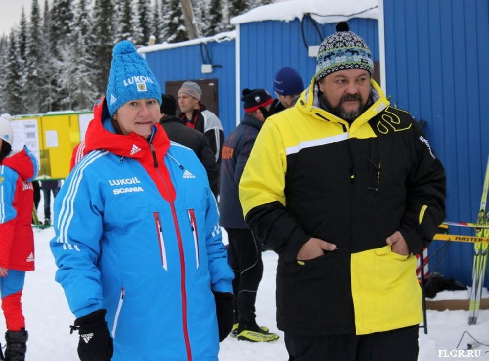 В настоящее время президент Федерации лыжных гонок России Елена Вяльбе находится на месте проведения соревнований. Справа директор соревнований – Александр Мальцев (директор ЦСП «Тея»).