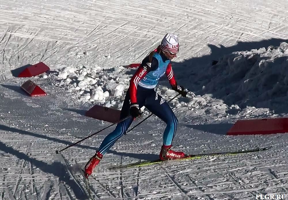 Дарья Сторожилова финиширует второй, уступая 5.8 секунды победительнице гонки.
