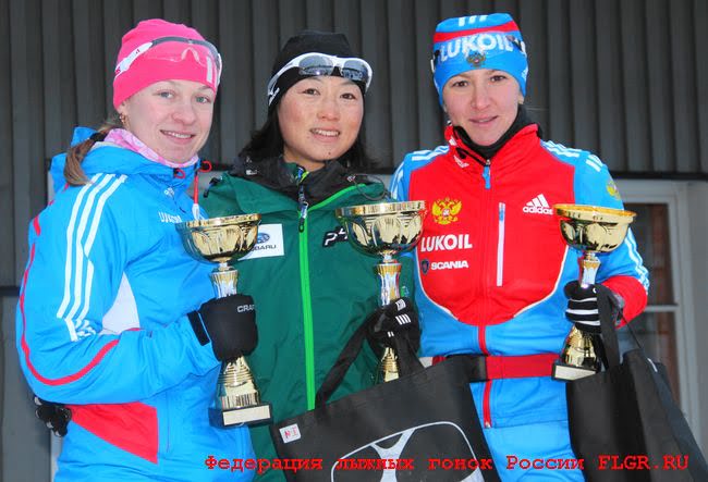 Награждение женщин. 1. Ишида Масако (Япония) 9:37,7, 2. Светлана Николаева (Архангельская область) 9:37,9 3. Екатерина Воронцова (Тюменская область) 9:43,3.