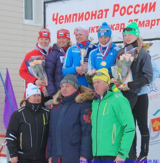 Награждение победителей и призеров гонки. Награждение проводит президент ФЛГР Елена Вяльбе, заслуженный мастер спорта Николай Зимятов и директор ГБУ МО "ЦЗВС" Московской области Владимир Букоткин.