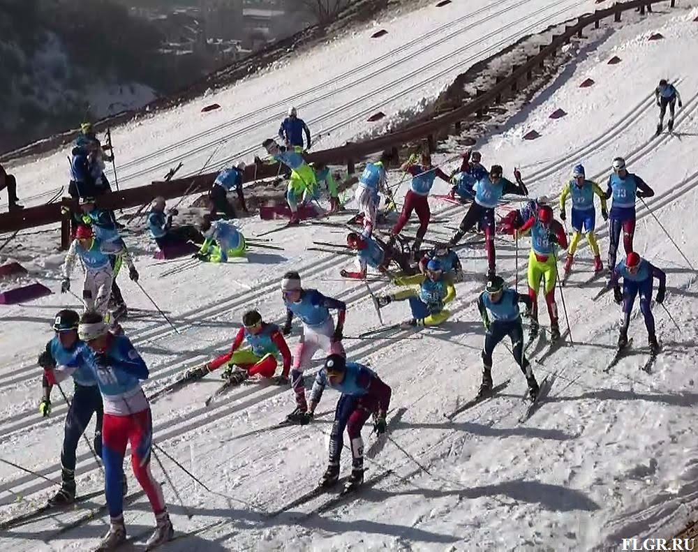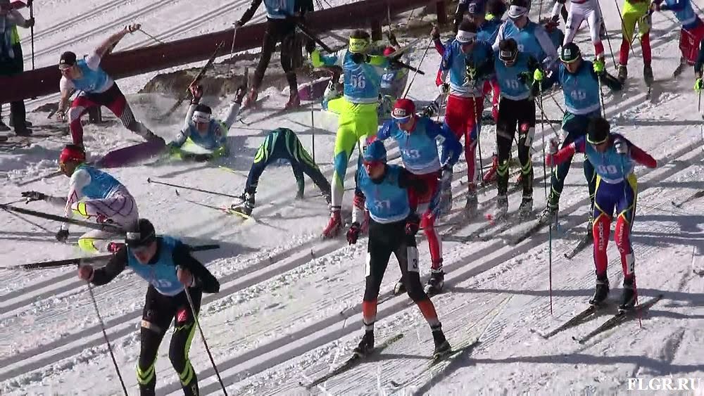 Через 200 метров после старта произошло массовое падение спортсменов.