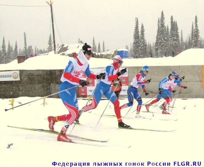 Финиш первого мужского полуфинала. Слева-направо: Александр Панжинский, Никита Крюков, Андрей Феллер.