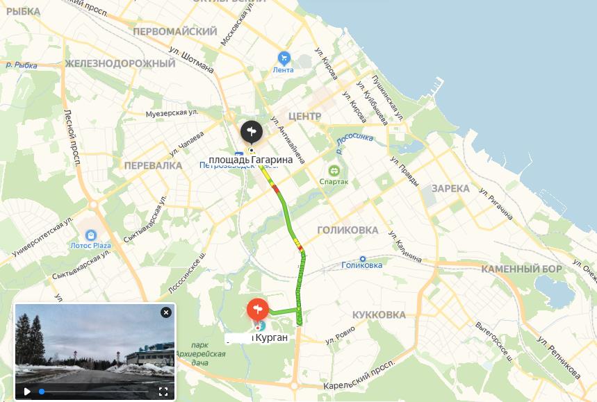 От МКАД до г. Петрозаводска 1000 км. Часть маршрута от Москвы до Великого Новгорода проходит по платной автотрассе М-11.Через 580 км от Москвы, в деревне Зуево по указателю «Петрозаводск» надо свернуть на дорогу 49К-05, проехать через Кириши, Волхов и Старую Ладогу и далее по федеральной трассе Р-21 «Кола» до самого Петрозаводска.
