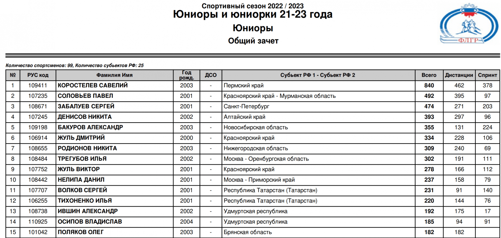 2 СЕМИКОВ ИЛЬЯ 1993 - Республика Коми 684 очков