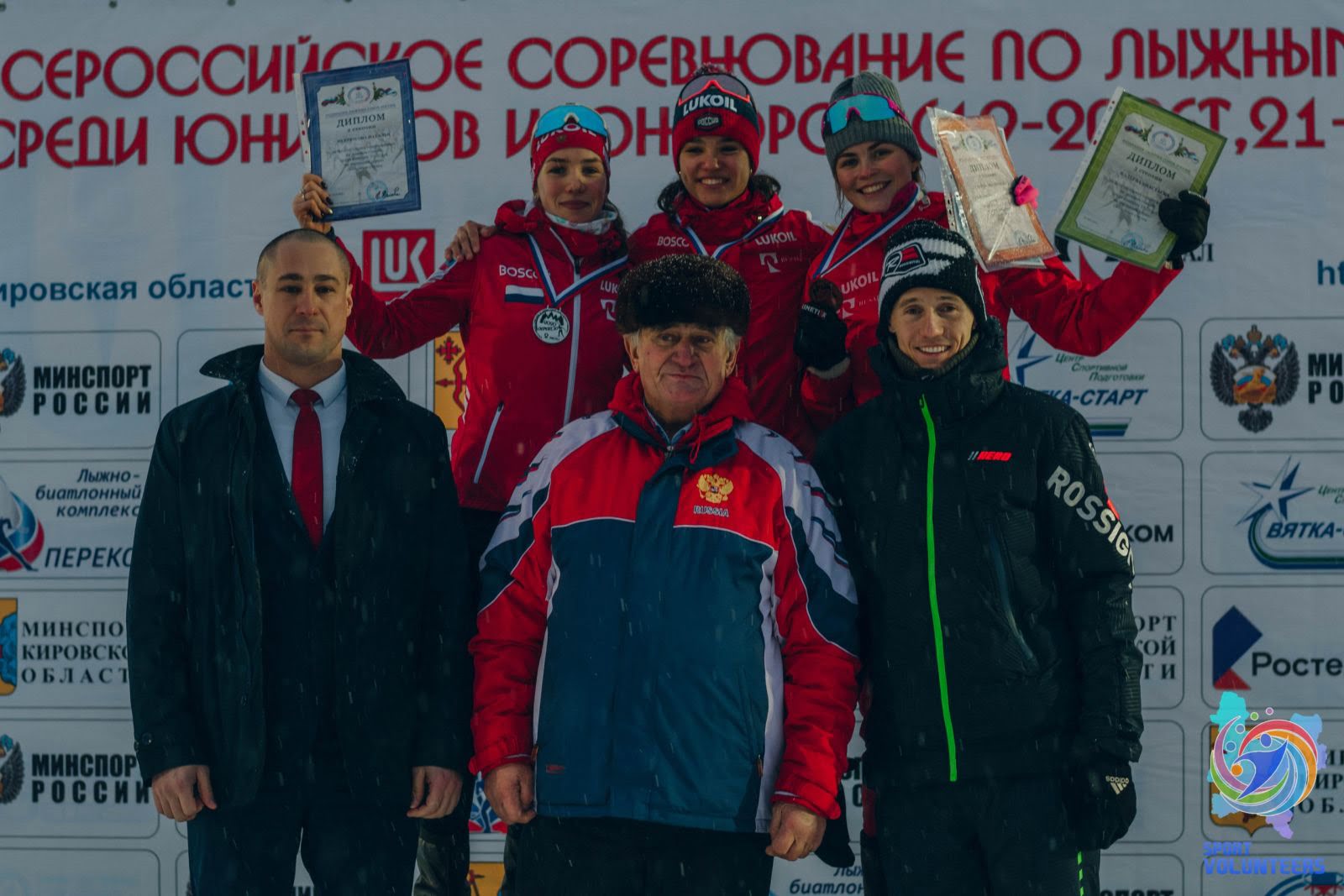 В награждении приняли участие олимпийские чемпионы Юрий Скобов и Никита Крюков. Нагреждение юниорок 19-20 лет.