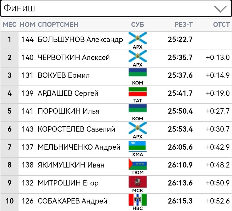 Среди мужчин победу одержал Александр Большунов, второе место занял Алексей Червоткин, третье место занял Ермил Вокуев.
