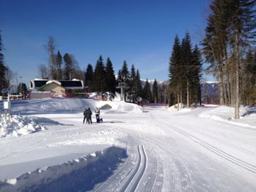 Фотографии сделаны 11 февраля в 8 утра. Как на них видно погода - яркое солнце, лыжня отлично подготовлена и ждет лучших спортсменов России для пробы олимпийских лыжных трасс.