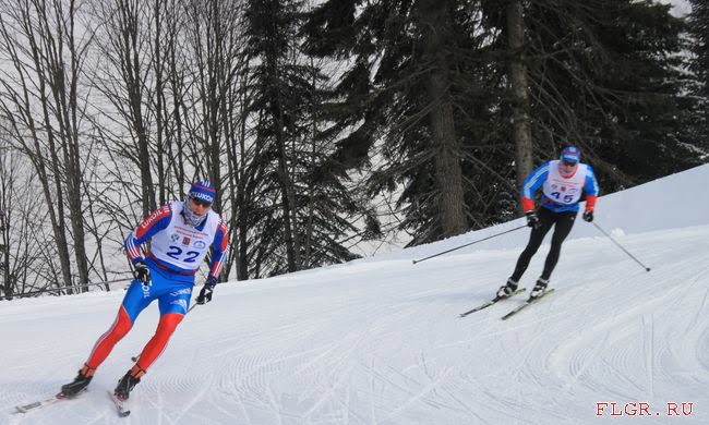 Слева Михаил Лукерченко (Эстония) и Константин Главатских (Удмуртская республика) на тесте лыж