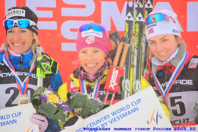 Финишный забег с завидным преимуществом выигрывает Кикан Рендал, представляющая США, второе место у французской лыжницы Орор Жан, третья Селин Брюн Ли из Норвегии.
