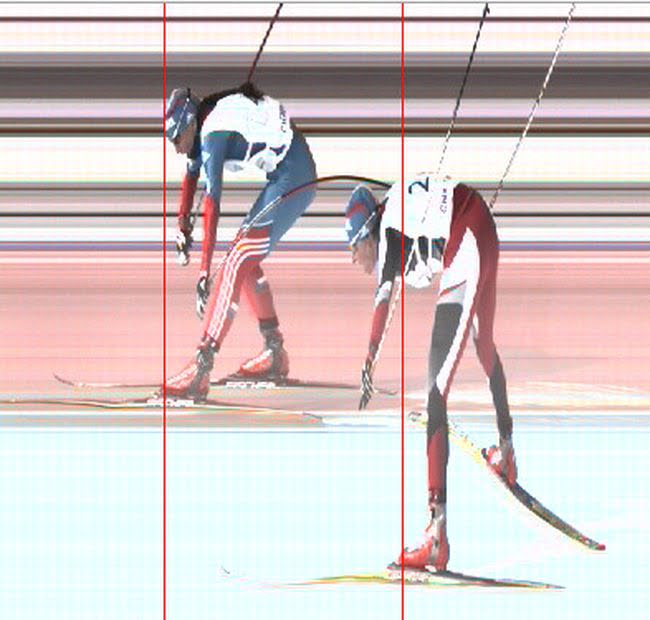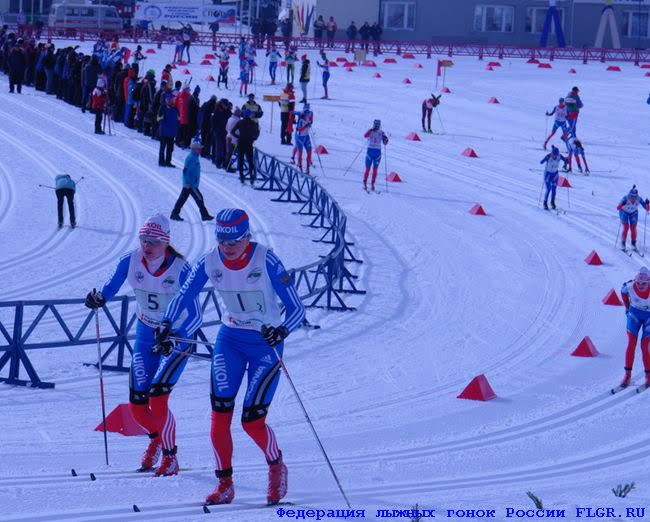 Борьба за третье место в эстафете между командами Республики Татарстан (Анастасия Доценко) и Тюменской области (Наталья Коростелева).