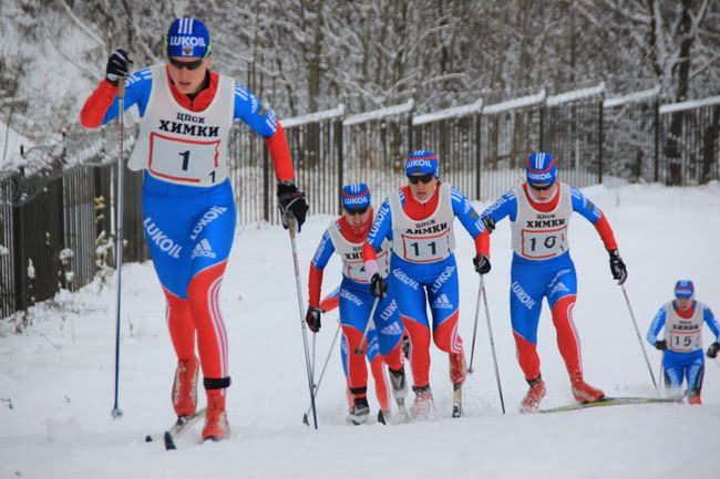 Лыжник в белом - Николай Болотов (Москва), следом Андрей Парфенов и Глеб Ретивых оба из Тюменской области
