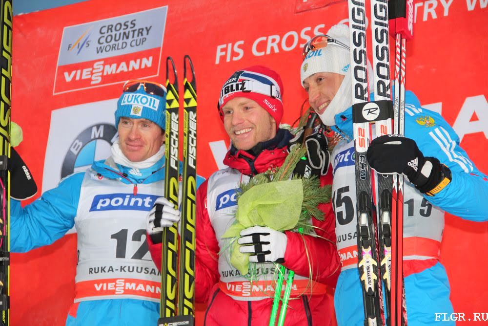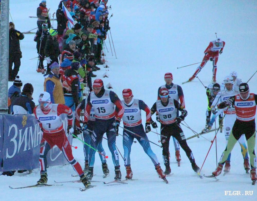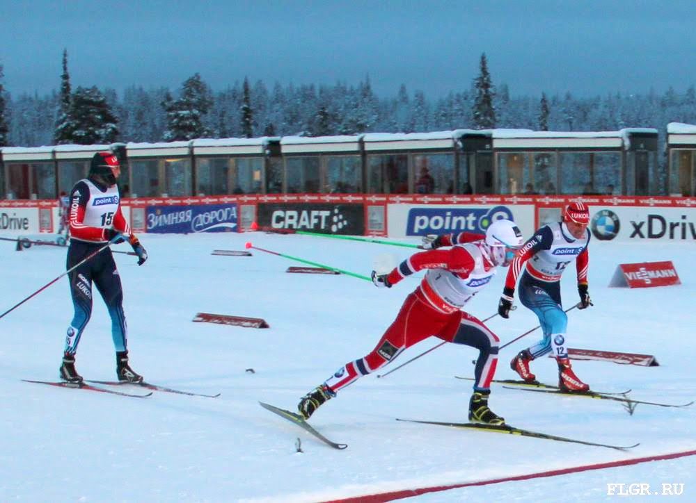 На финишную прямую спортсмены вышли практически одновременно, но быстрее всех в спурте оказался норвежский лыжник. Вторым пришел Вылегжанин, третьим Легков.