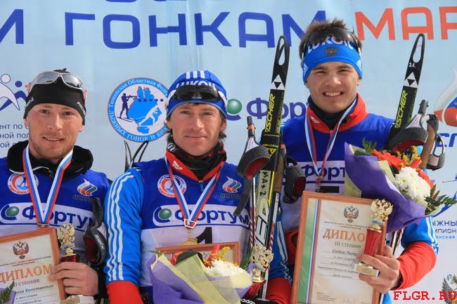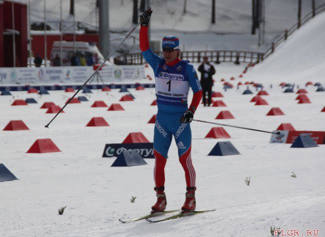 За 10 км до финиша Андрей Ларьков из Республики Татарстан одним рывком создает разрыв в 20 секунд и никто не решается его догнать, но когда до финиша остается 5 км Максим Вылегжанин встает вперед группы преследования и за несколько километров ликвидирует разрыв.