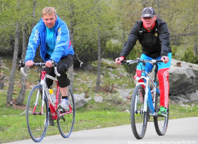 Тренерский штаб в лице старшего тренера Олега Перевозчикова (Удмуртская Республика) и Данила Акимова (Республика Саха (Якутия)) передвигаются на велосипедах в целях контроля выполнения поставленной тренировки.