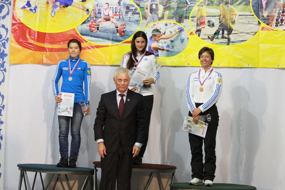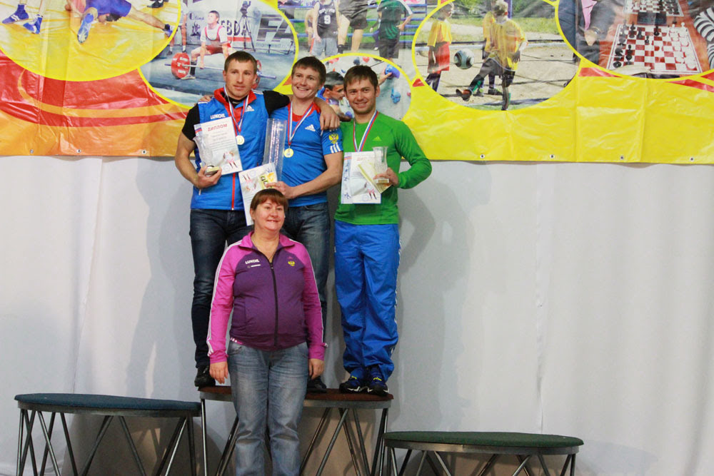 Индивидуальная гонка. Турышев, Уткин и Шакирзянов. Награждение проводит Елена Вяльбе.