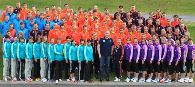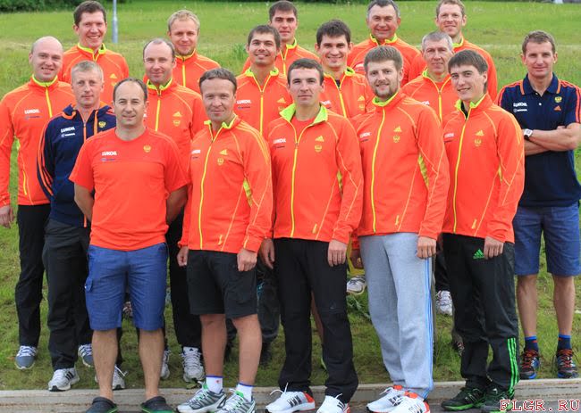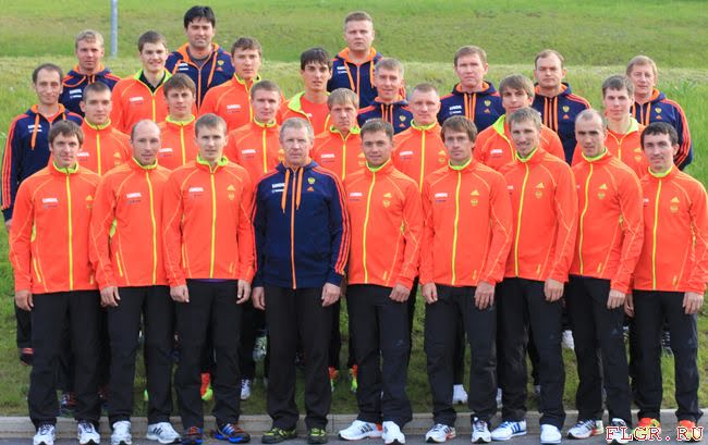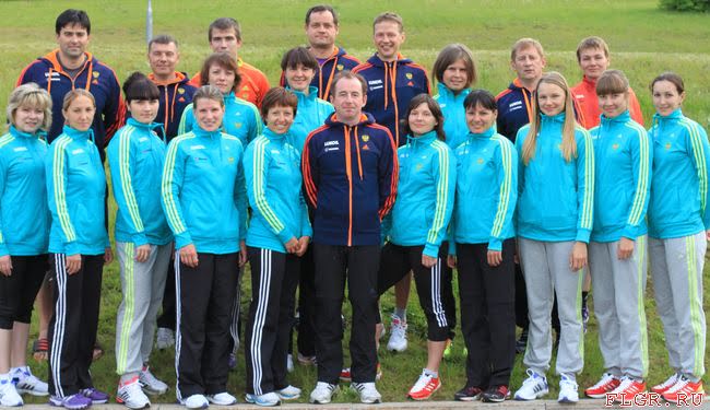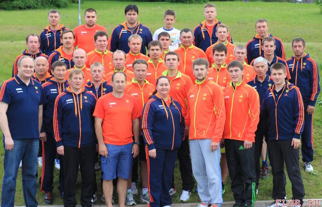 В центре Заместитель Министра спорта Юрий Нагорных, президент ФЛГР Елена Вяльбе и главный тренер Юрий Каминский