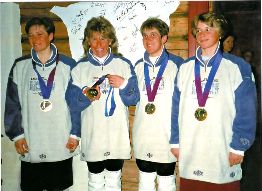 Сборная команда России – чемпион XVII Олимпийских зимних игр 1994 года в Лиллехаммере по биатлону в эстафете 4х7,5 км. Слева направо: Луиза Носкова, Анфиса Резцова, Надежда Таланова и Наталья Снытина