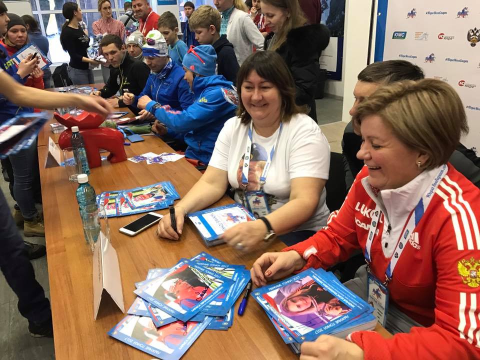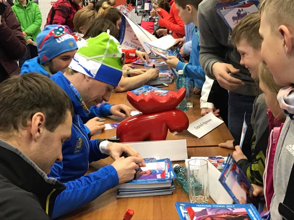 Любой желающий смог получить автограф-карты с подписями пятикратной олимпийской чемпионки Ларисы Лазутиной, трехкратной олимпийской чемпионки Елены Вяльбе, серебряных медалисток чемпионата мира 2017 Натальи Матвеевой и Юлии Белоруковой, призера чемпионата мира Алексея Червоткина, а также выдающихся югорских лыжников Сергея Крянина, Евгения Дементьева, Антона Гафарова и Сергея Устюгова.