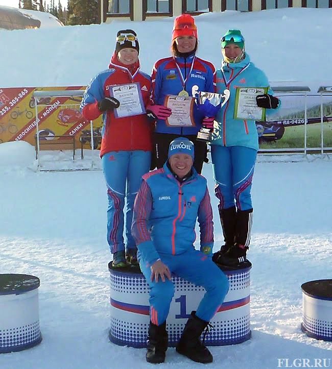Награждение среди женщин провел призер XXII Олимпийских зимних игр Дмитрий Япаров. Слева-направо: Давыденкова, Кварацхелия, Репницына.