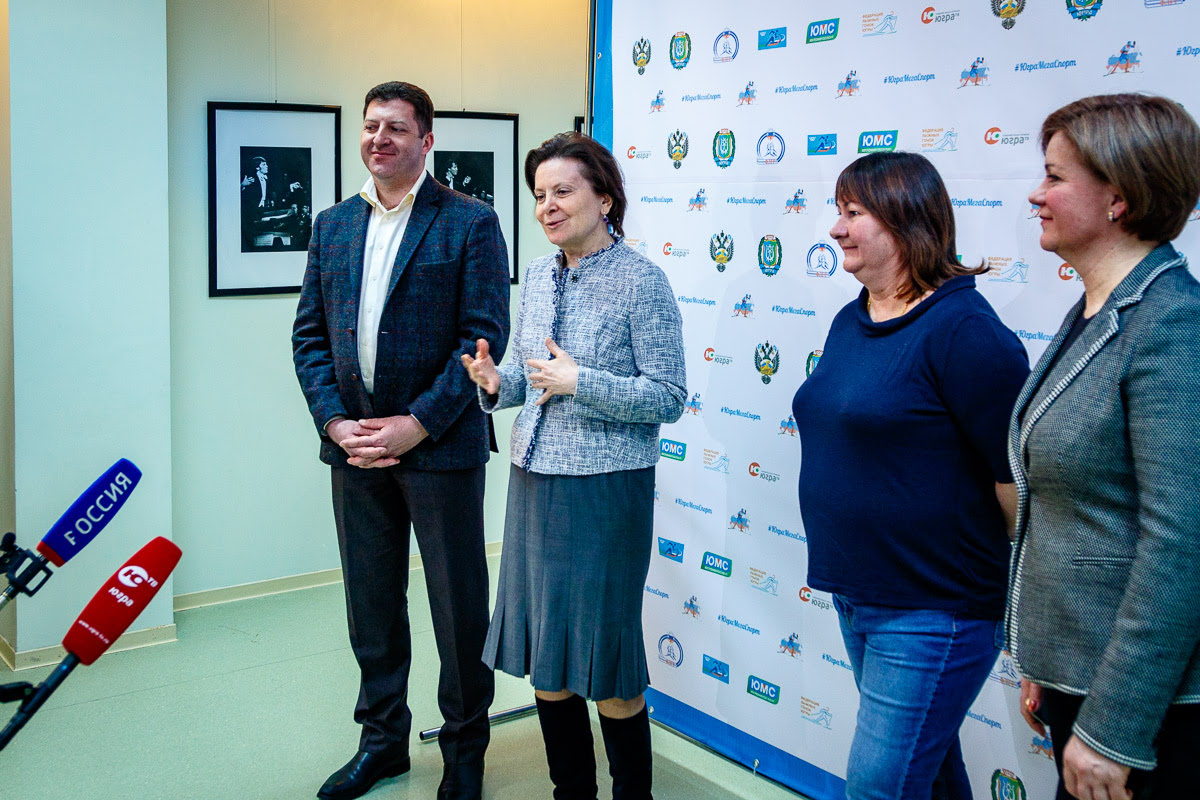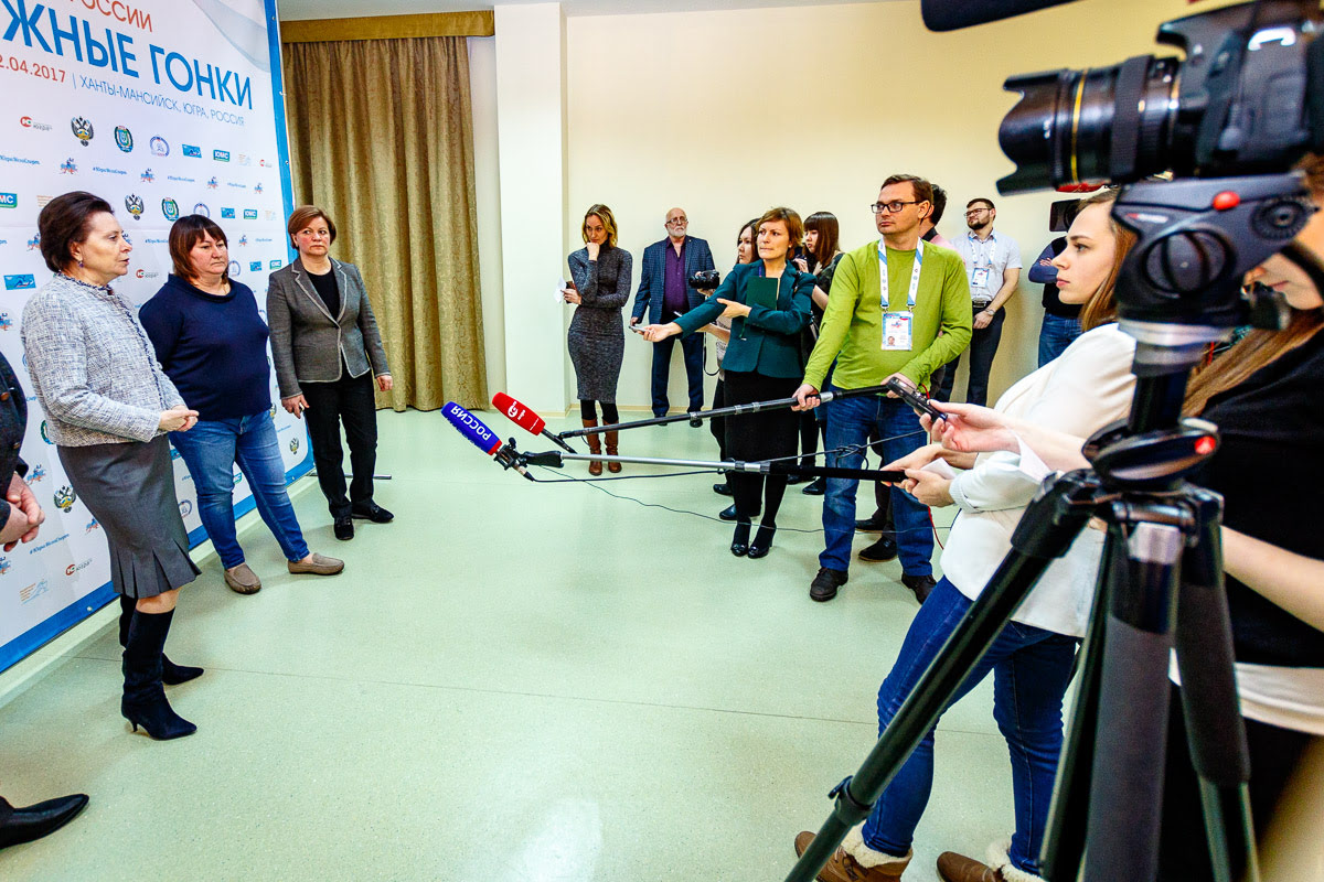 После церемонии открытия чемпионата России по лыжным гонкам в пресс-зале КТЦ «Югра-Классик» состоялся пресс-подход с участием губернатора Югры Натальи Комаровой, трехкратной олимпийской чемпионки, президента Федерации лыжных гонок России Елены Вяльбе, пятикратной олимпийской чемпионки Ларисы Лазутиной и директора департамента физической культуры и спорта Югры Игоря Губкина.