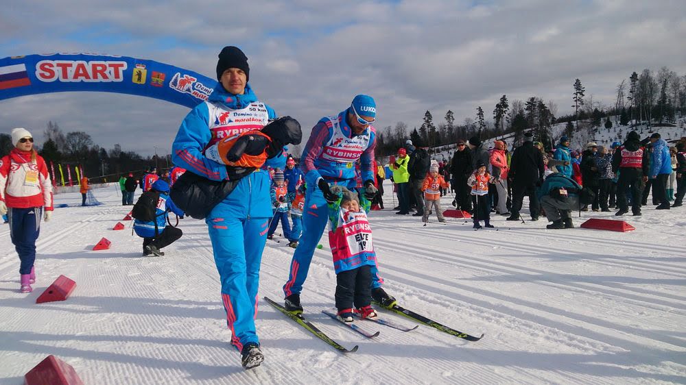 Открылся второй день соревнований традиционным деминским «бэби-марафоном». На старт, а для многих участников он стал первым, вышли почти 120 юных лыжников, возраст которых не превышает 7 лет. Напутствовали участников детского марафона призер Олимпийских игр, чемпион мира Алексей Петухов и призер Олимпиады и чемпионатов мира Николай Морилов. Кстати, сегодня впервые вышел на деминскую лыжню и Иван Петухов, сын известного лыжника. Несмотря на то, что протяженность дистанции детского марафона составляет всего 1 км, он вместил в себя столько эмоций и спортивной борьбы, которых хватило бы ни на один взрослый марафон. А потому, все его участники стали настоящими победителями и на финише получили медали из рук Алексея Петухова, Людмилы Колобановой, 11-кратного мастера Worldloppet, и швейцарской лыжницы Наташи Леонарди-Кортези, призера Олимпийских игр и неоднократной участницы Деминских марафонов.