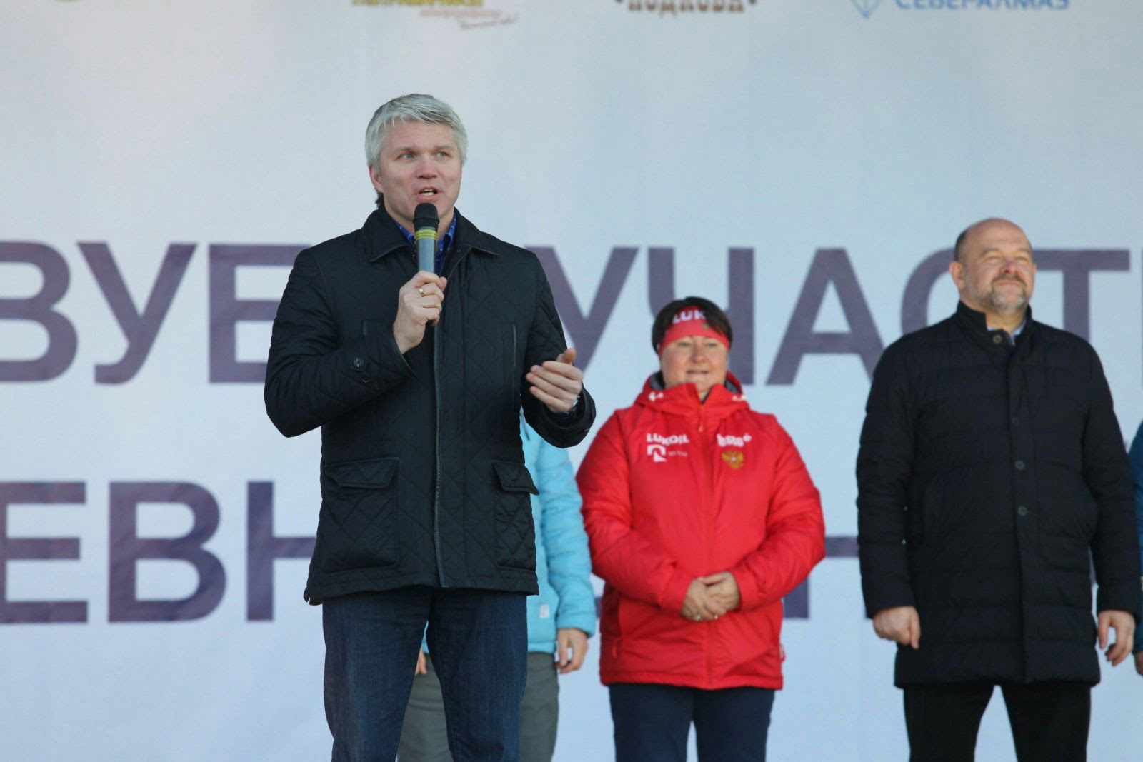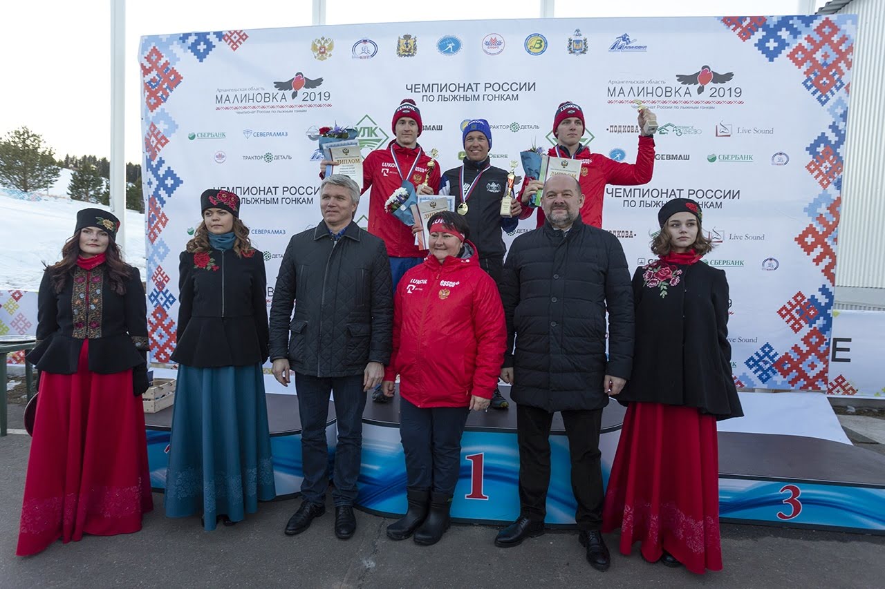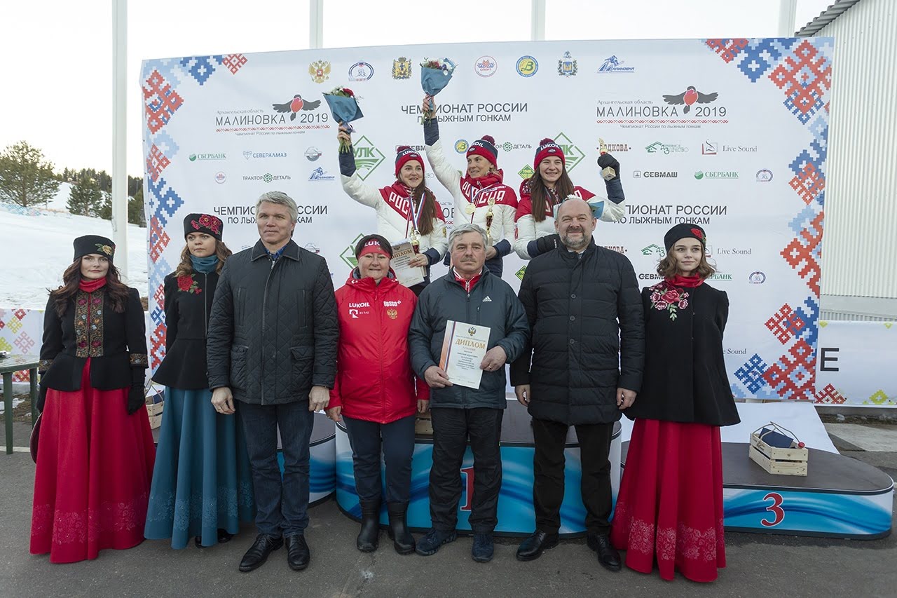 Министр спорта России Павел Колобков, губернатор Архангельской области Игорь Орлов и президент Федерации лыжных гонок России Елена Вяльбе дали официальный старт чемпионату страны по лыжным гонкам в устьянской «Малиновке».