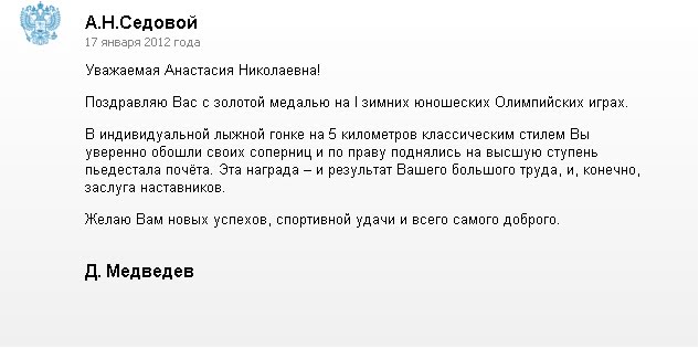 Поздравления Анастасии Седовой (Нижегородская область)
