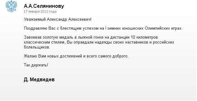 Поздравления Александру Селянинову (Архангельская область)