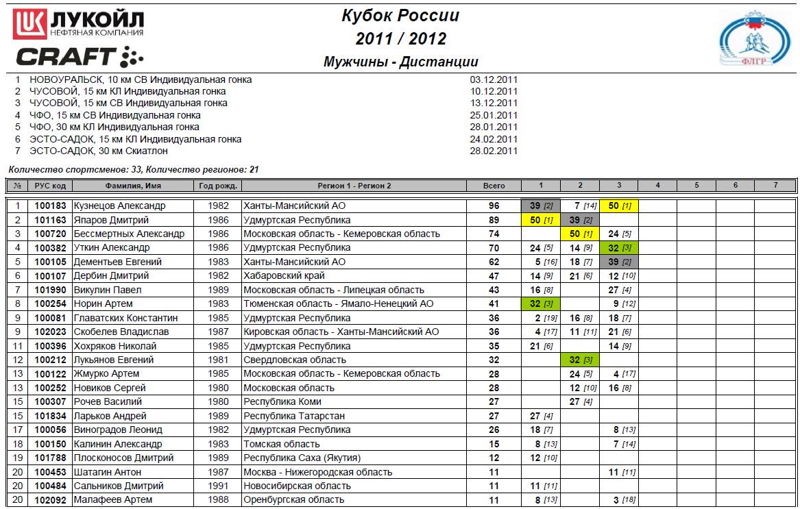 Кубок России (2011-2012) - Мужчины Дистанции (pdf, 219 КБ )