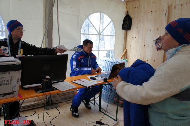 Секретариат соревнований. Как видите внутри не так уж и тепло, все в верхней одежде и шапках