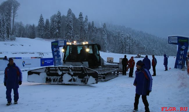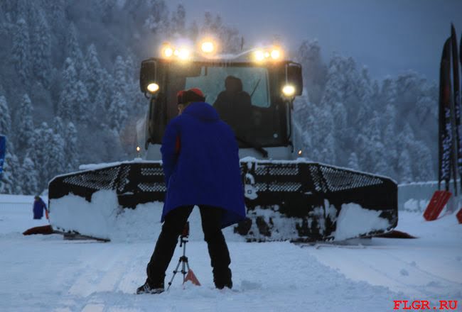 Тем временем ретрак уже готовит лыжню по всей трассе. Финишный створ - особое место, здесь нужно не только проложить лыжню в соответствии с международными правилами, но и установить оборудование для регистрации финиша приходящих участников