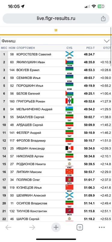 5. Илья Порошкин (Республика Коми) +55.2 секунды