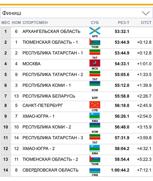 2. Тюменская область (ЖАМБАЛОВА Алиса, СМИРНОВА Екатерина, СОРИНА Татьяна, ПАНТРИНА Елизавета) +12.8 секунды