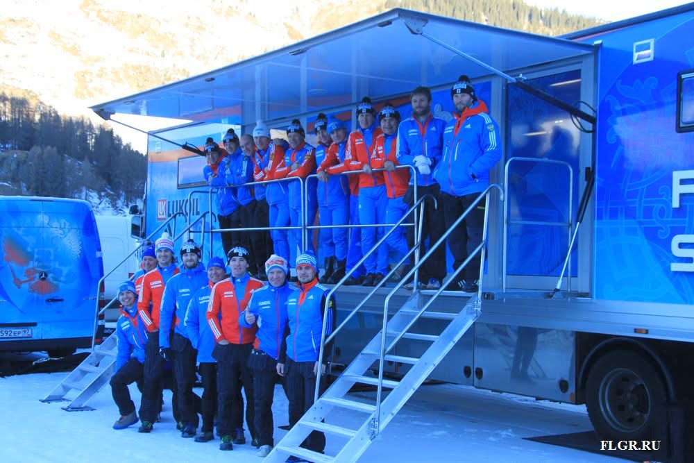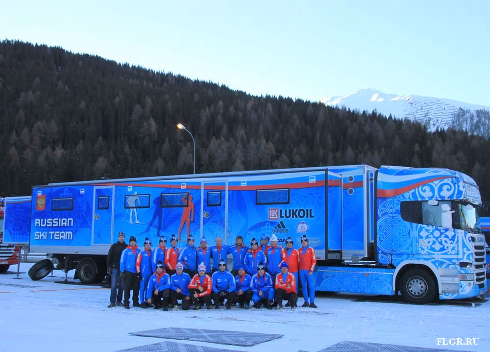 Сервисный грузовик сборной команды России по лыжным гонкам.