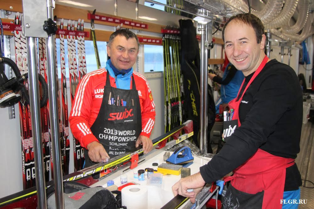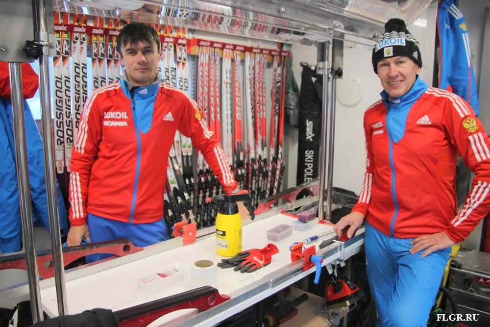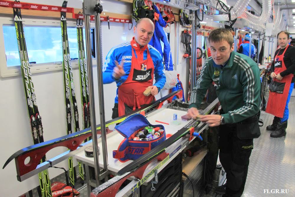 Вместе с командой постоянно находятся сервисмены, занимающиеся подготовкой лыж, именно от их рук и правильно подобранной смазки зависит более чем 50% успеха наших спортсменов.
