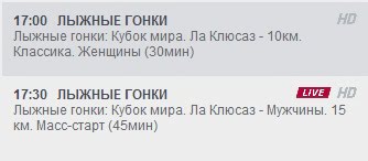 19 января - суббота. Масс-старт на 10 и 15 км классическим стилем. В 17.00 женщины, в 17.30 мужчины (прямая трансляция).