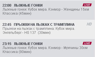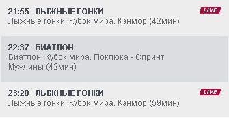 16 декабря, воскресенье. Скиатлон. Прямая телетрансляция на телеканале Евроспорт в 22.00 женская гонка и в 23.15 мужская гонка.