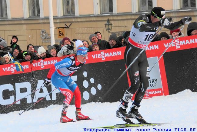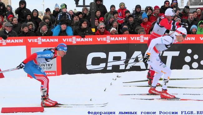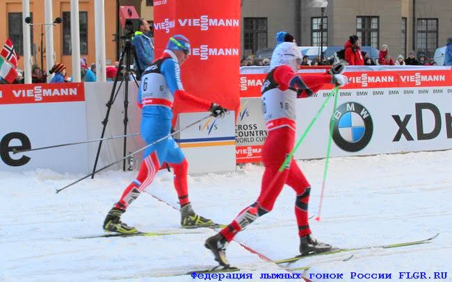 Финиш мужского финала. Нортуг лидирует, идет борьба за второе и третье место. Никита Крюков (слева) и Сергей Устюгов (справа).